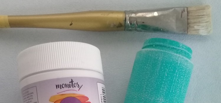 Pintar con esponja y Pintura Tiza color turquesa. Dejar secar y repetir. Yo le di dos manos de pintura.