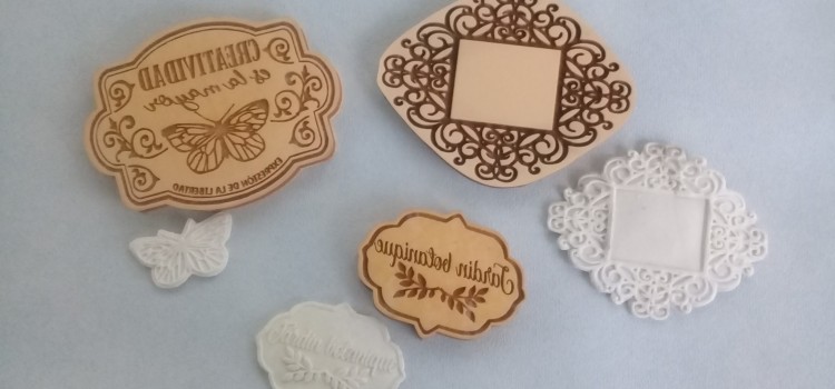 Estirar la porcelana fría con un palo de amasar, espolvorear con talco o maicena y apoyar el molde para formar la placa. Presionar bien y desmoldar. Recortar los excedentes con tijera. Dejar secar.