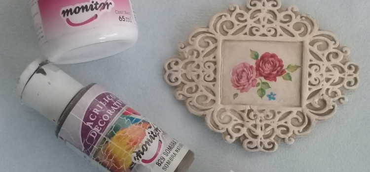 Pintar la placa con Acrílico Decorativo color Blanco y dejar secar. Con Acrílico Decorativo color Sombra Tostado aguado, pincelar para que la pintura entre en los bajo relieves. Enseguida, retirar con un trapo.
