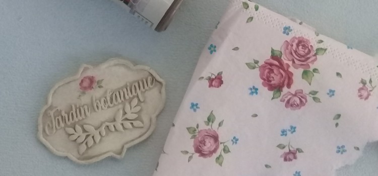 Recortar un diseño pequeño de alguna servilleta y pegar con Mod Podge sobre la placa de porcelana. Secar.