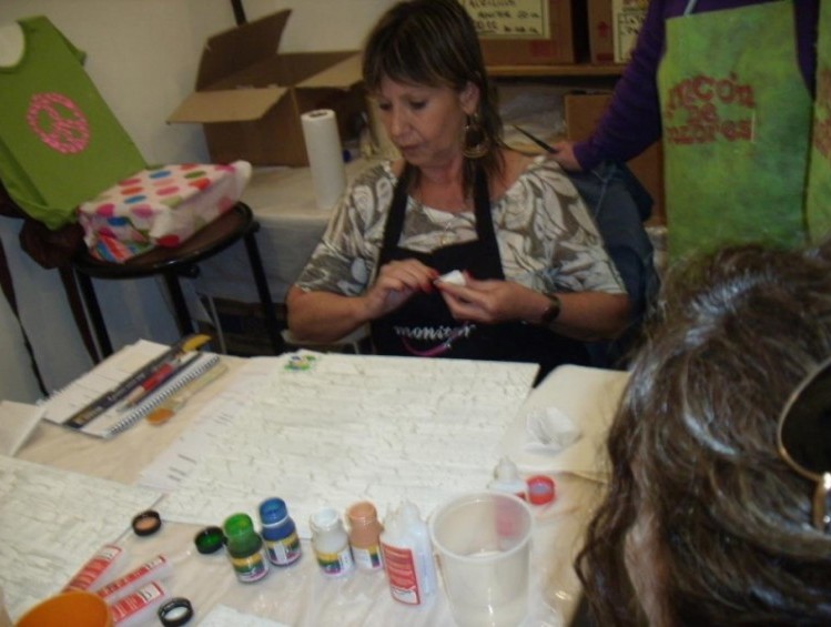 Qué contentas quedamos todas, maestra y alumnas. Lograron trabajos hermosos utilizando los nuevos productos. Por ahora tenemos muy poquitas fotos, ya subiremos más. Fue el 24 de octubre, trabajamos toso el día, desde las 9 a las 18.30hs. Eso si, al mediodía realizamos un corte para "picar" las delicias con que nuestros anfitriones nos sorprendieron, RÍQUISIMO. Gracias a todos, alumnas, gente de Rincón de Colores, lo pasé muy bien.
