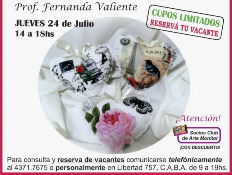 - El pasado 24 de Julio la profesora Fernanda Valente realizó un seminario en el cual enseño diversas técnicas textiles. El proyecto realizado fue "Corazones Perfumados". Les dejamos algunas fotos para que disfruten o revivan este proyecto.