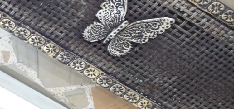 Lijar suavemente y patinar con Óleo color Sombra Natural la parte que pintamos de Blanco y con el Metal en Pasta color Oro la parte que pintamos de color Vino.