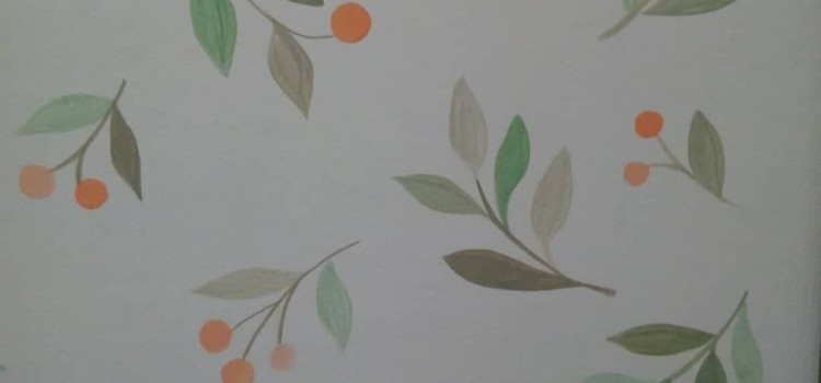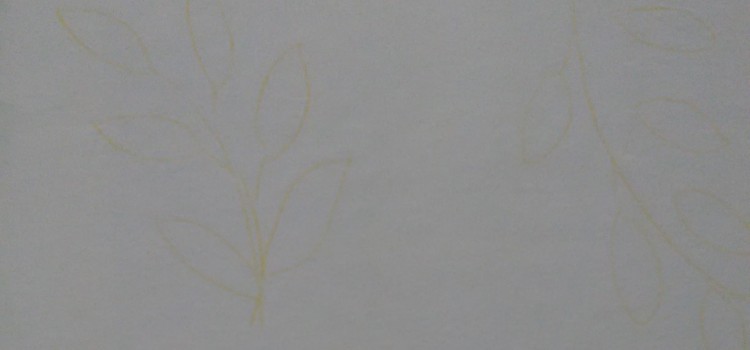 Sobre una pared blanca transferir con el carbónico, el diseño, en este caso hojas con frutos.