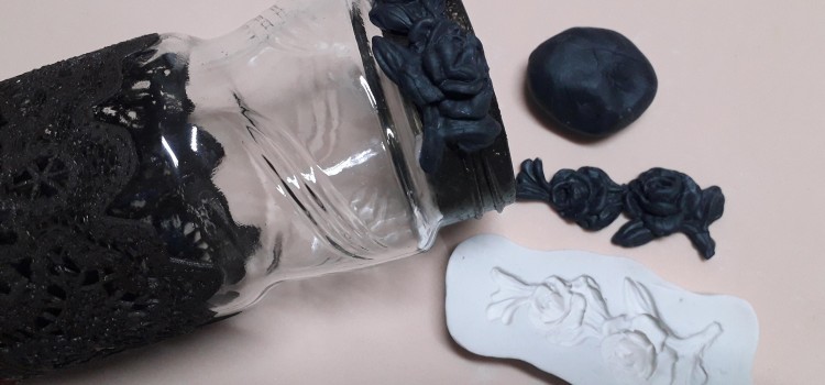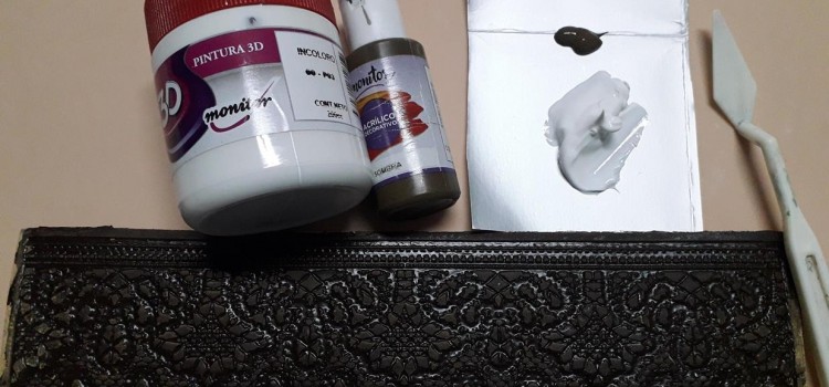 Teñir una porción de porcelana fría con Acrílico Decorativo Negro y usar un molde de silicona para realizar la moldura, pegar con cola vinílica.