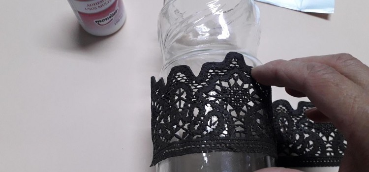 Adherir la puntilla al frasco limpio y sin etiquetas.