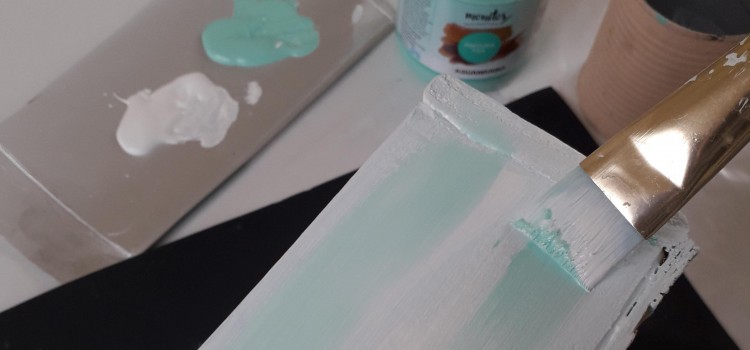 Pintar con Pintura Tiza Aguamarina y blanco en forma intercalada
