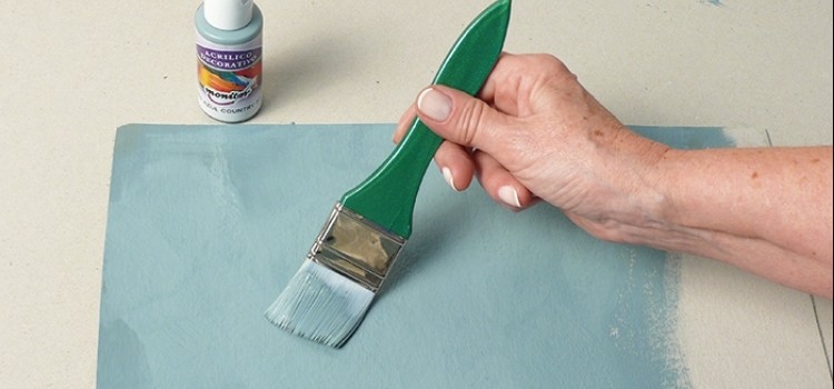 Utilizando el pincel #20 o pinceleta de pelo sintético y Acrílico Deocrativo Azul Country, realizar un fondo plano en todo el bastidor.