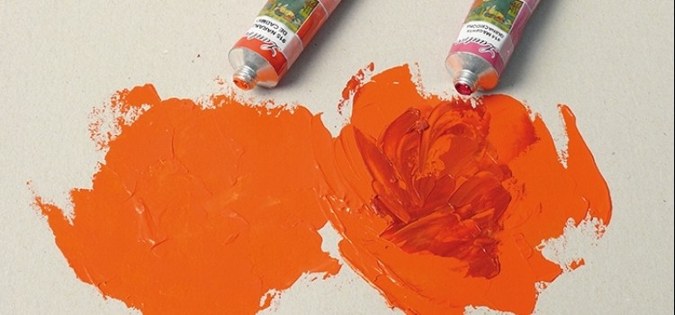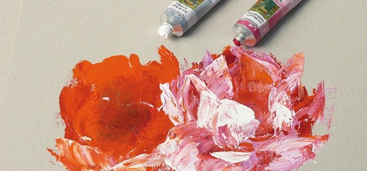 Manchar con Naranja y espátula con movimientos en círculo la zona de las flores. En el centro manchar con Magenta. Dejar secar.