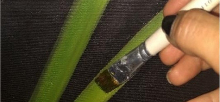 Para el cabo de la flor utilizamos Óleo Verde Óxido de Cromo, Amarillo Mediano, Tierra de Sombra Natural.