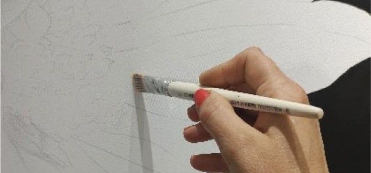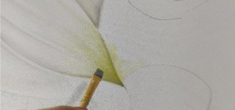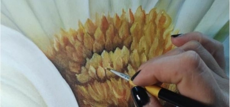 Los pétalos los pintamos con Óleo Blanco Titanio, y para las sombras utilizamos Negro Marfil y Tierra de Sombra Natural.