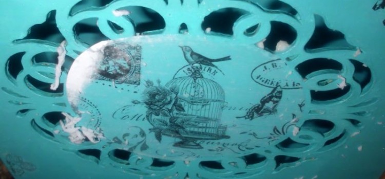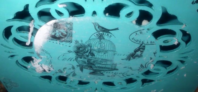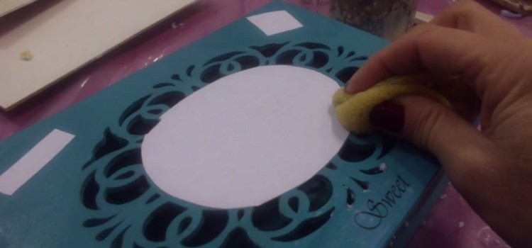 Pintar la caja con partes iguales de Acrílico Turquesa y Sellador. Dejar secar. Lijar. Dar una segunda mano con acrílico puro.