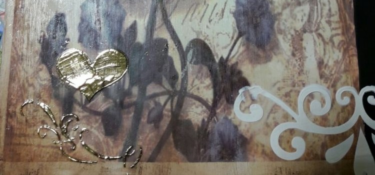 Realizar un corazón u otra pequeña figura utilizando esténcil, Glitter Tac 3D y espátula. Dejar secar hasta que esté completamente transparente. Recién entonces ubicar el Foil con el color hacia arriba, presionar y retirar.