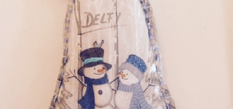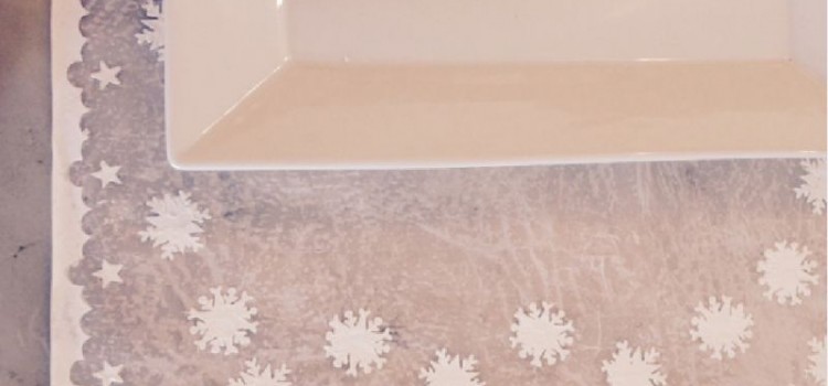 Pasar con esténcil de guarda navideña y Pintura 3D color blanco, corroborar que en los ángulos quede la guarda coordinada. Dejar secar. Cortar en forma de ondas, o recto, según preferencia.