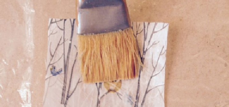 Sobre un nylon, pasar con pinceleta y abundante cantidad de EnTela, desde el centro hacia los costados. La servilleta cederá un poco en ambos sentidos. Sacar burbujas y repasar suavemente con los dedos si fuera necesario. Dejar secar colgado con el nylon.