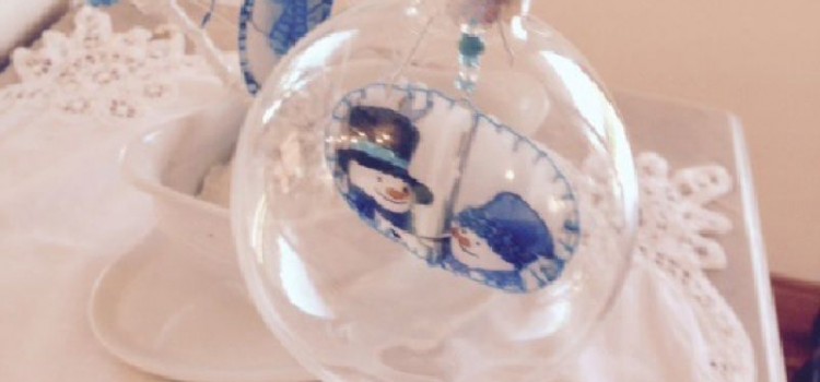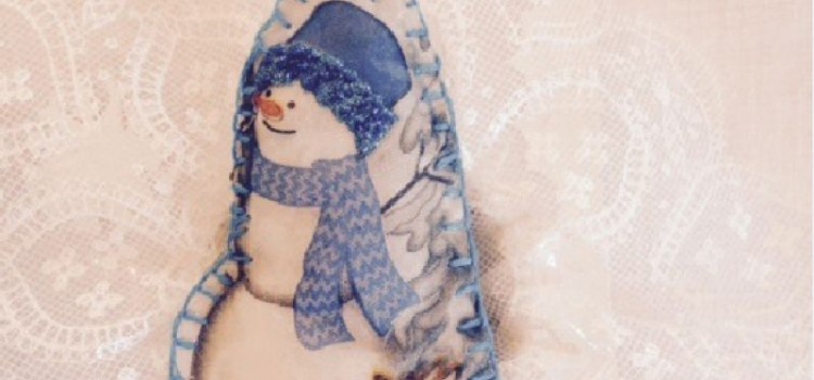 Con las mismas caritas de los muñecos, siempre con punto festón en bordes y rellenos de guata, se hace adornos, tanto para colgar del árbol navideño, como para introducirlos en las esferas. Que deben tener boca ancha o conseguir las que se abren en dos mitades.