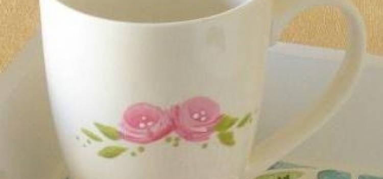 • Pintar la rosa con pincel angular n° 4 realizando doble carga con fucsia y blanco y las hojas con verde y blanco