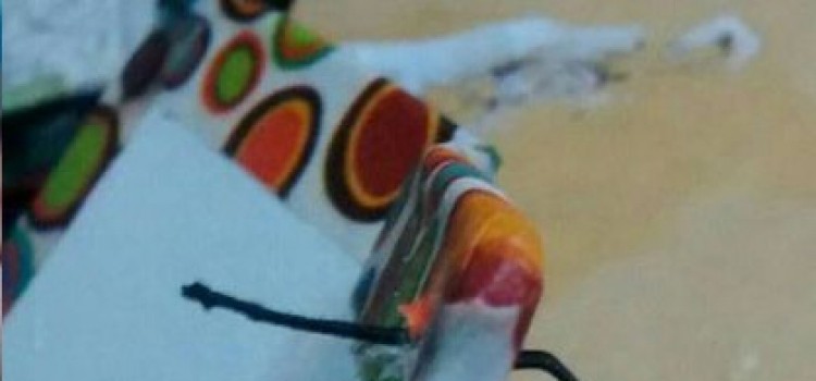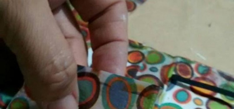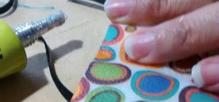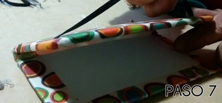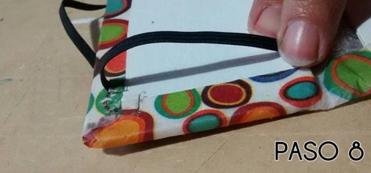 En la tapa trasera realizar un corte que atraviese, servilleta, guata y cartón. Por allí pasar el elástico que cerrara la funda.