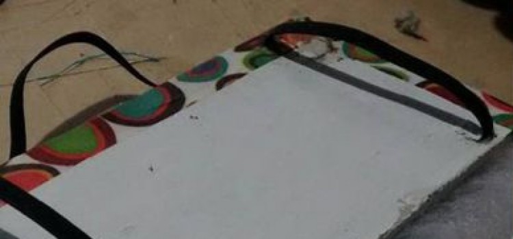 Hacer un corte en el cartón en la parte trasera, colocar un elástico en la parte superior y otro en la parte inferior, estos, sujetaran el celular.