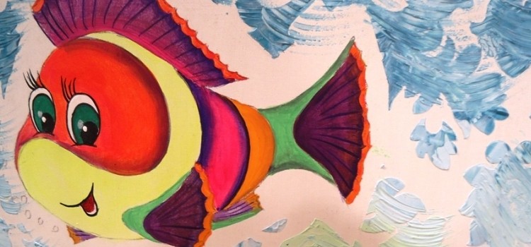 Cuadro con peces -Fondeado con pintura 3D y decorado con coloridos peces Ideal para una habitación infanto-juvenil