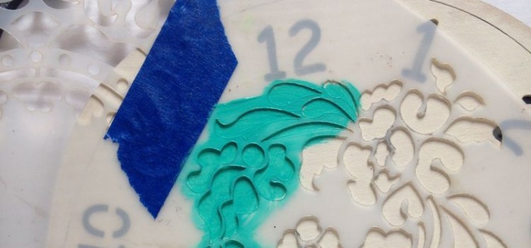 Colocar el esténcil de forma que quede un motivo entero. Fijar con cinta.