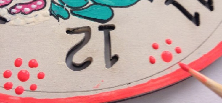 Realizar en las flores puntos con la parte de atrás de un pincel bien fino, o un palito de brochet. También en el cuerpo del caracol.