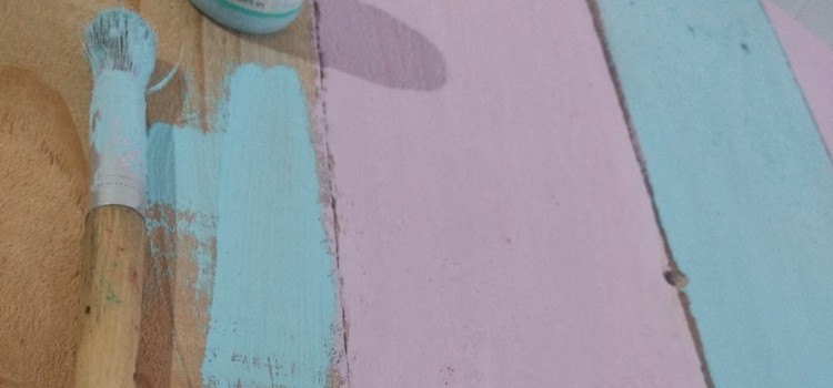 Pintar los listones alternando los colores Rosa Malva y No me olvides de Pintura Tiza.