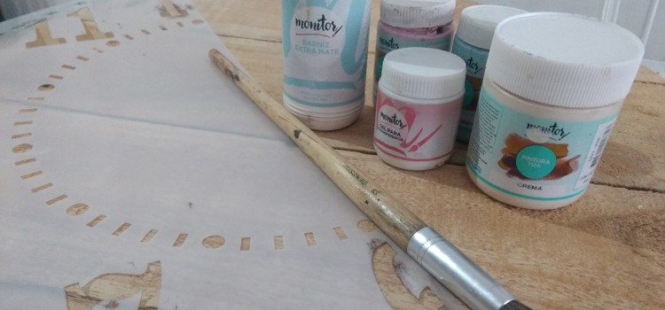 Recortar la fotocopia láser, pincelarla bien con Gel para transferencia del lado de la imagen. De inmediato, posicionarla cara abajo en el reloj, presionando bien. Dejar secar varias horas. Humectar con una esponja y agua. Presionar con la yema de los dedos hasta retirar toda la pulpa de papel. Colocar el esténcil, y realizar los números con pincel de cerda y pintura tiza Blanco. Decorar con el sello y acrílico Negro Dorado.